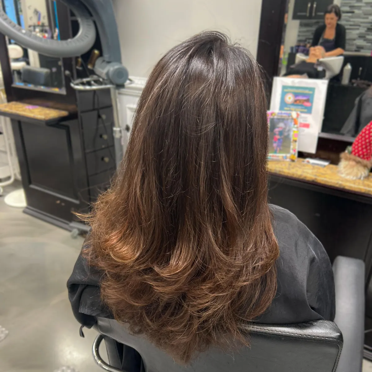 Get that soft, sun-kissed effect with balayage—custom-blended for your hair type and tone. A low-maintenance way to keep your color looking effortlessly fresh.